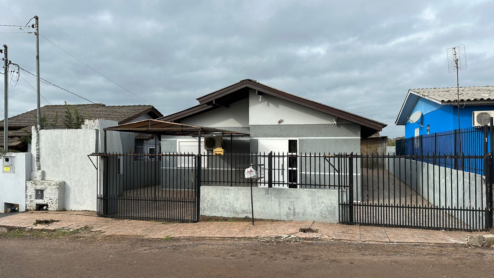 Casa de alvenaria com 1 suíte, 1 quarto, 1 cozinha, 1 sala, 1 banheiro, 1 lavanderia, 2 vagas de garagem, piscina e pátio fechado.