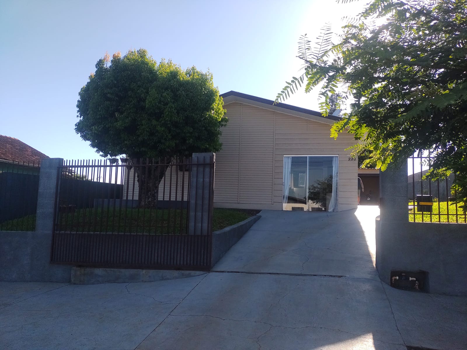 Casa de alvenaria com 3 quartos e 2 vagas de garagem. Pátio fechado.