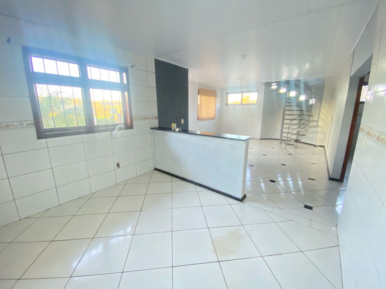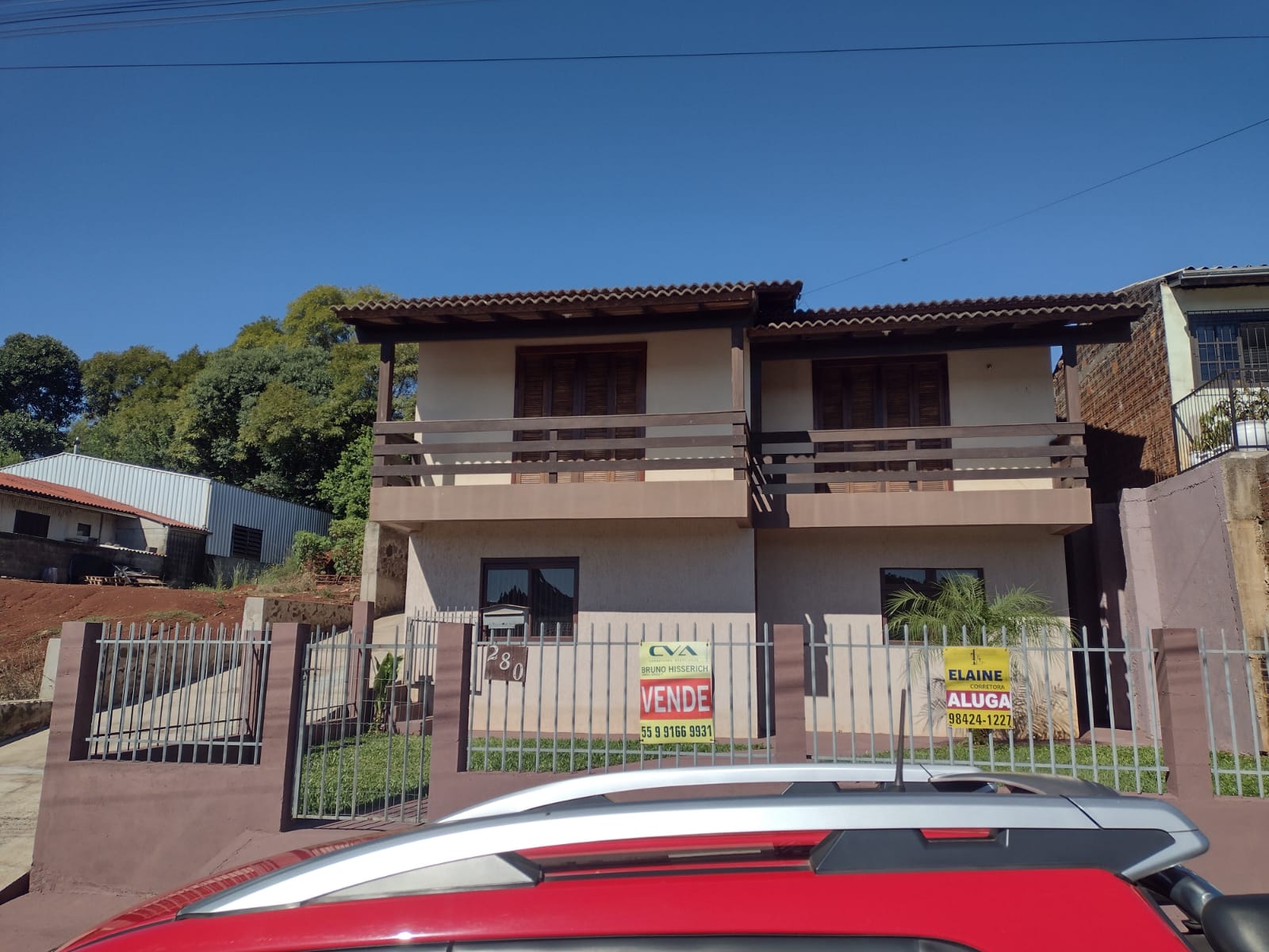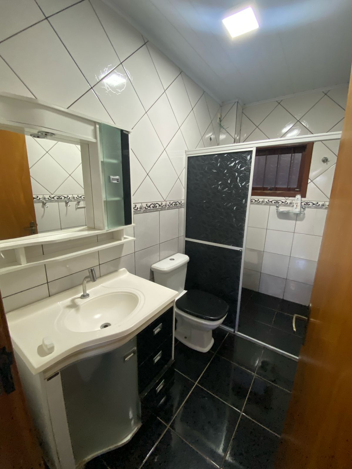 Casa de alvenaria com 3 quartos, 2 banheiros, 1 sala de estar, 1 cozinha, 2 vagas de garagem e pátio fechado.