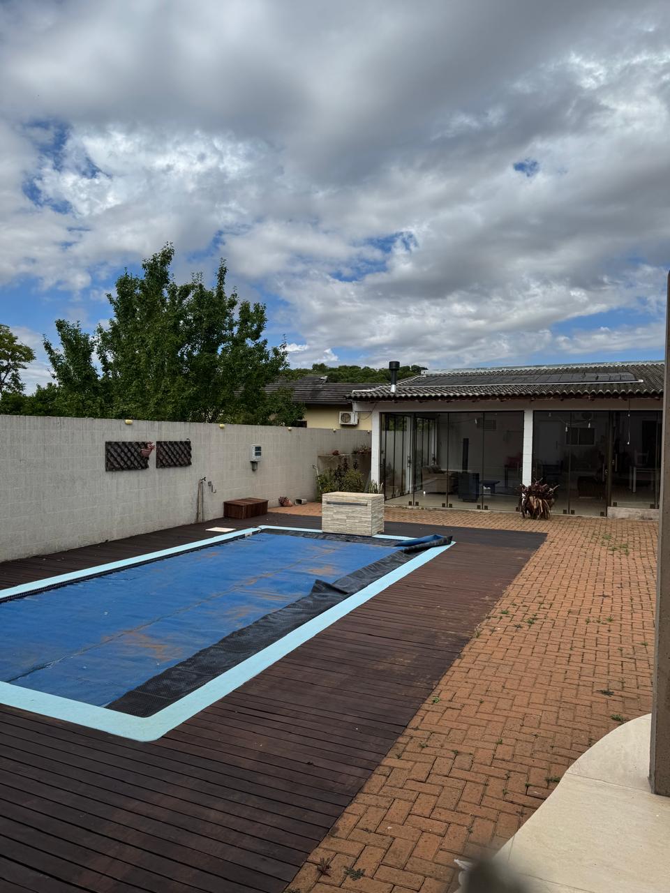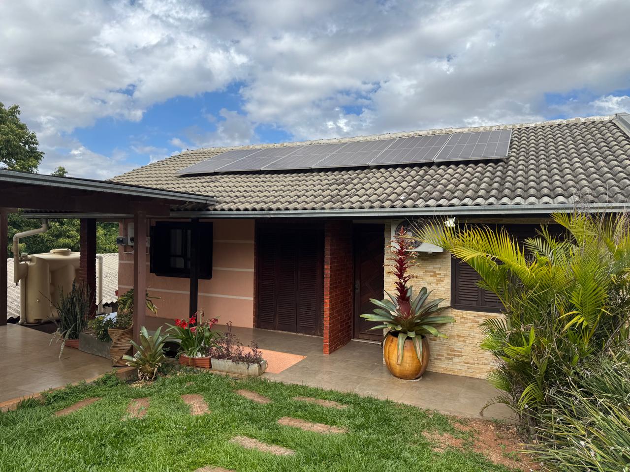 Casa de alvenaria com 1 suíte e 2 quartos. Quiosque com fogão campeiro. Piscina com aquecimento. Pátio fechado.