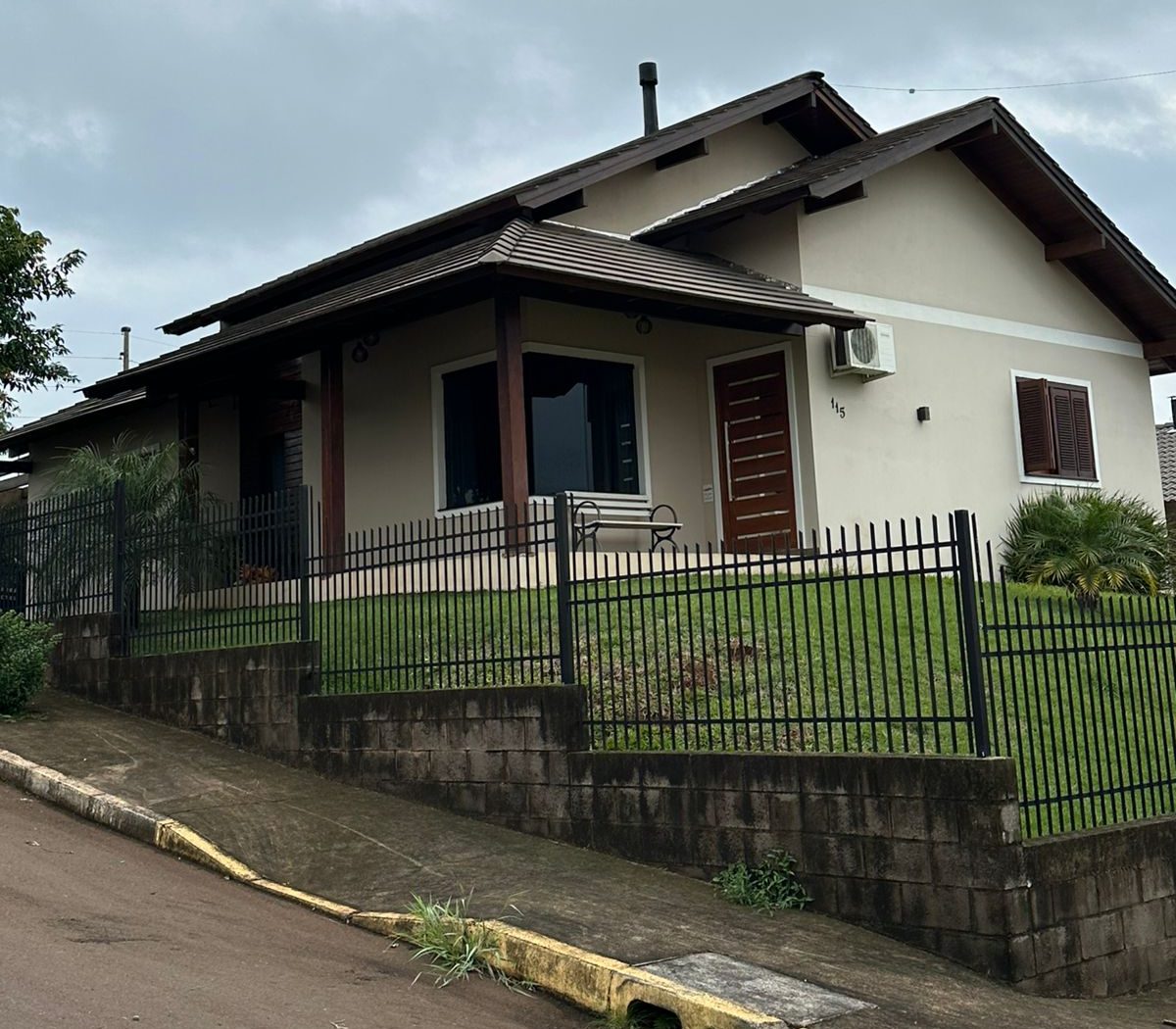 Casa de alvenaria de esquina com 1 suíte, 2 quartos, 1 cozinha, 1 sala, 1 banheiro social, 1 lavanderia, 2 vagas de garagem e pátio fechado. Inclui 3 climatizadores, calefator de sala, móveis planejados na cozinha, balcão no banheiro e balcão na suíte.