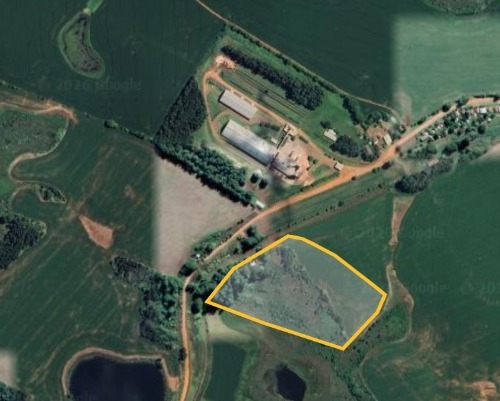 Fração de terras com 5 hectares, sendo 3 hectares de área de plantio. Possui casa de alvenaria e vertente. Localizada próximo à Cotripal.